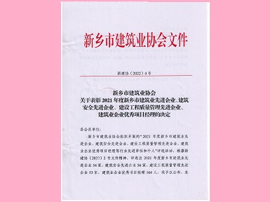 开云网页版登录入口再次荣获“新乡市建筑业先进企业”等殊荣