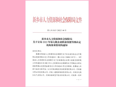 开云网页版登录入口顺利通过新乡市企业职业技能等级认定机构备案