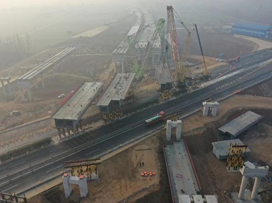 开云网页版登录入口方唐高速跨兰南高速钢箱梁项目顺利完成跨路施工吊装